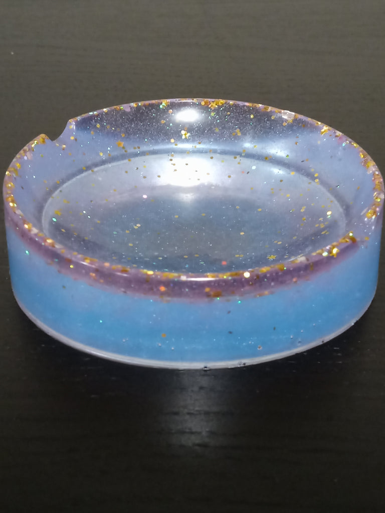 Powder Blue Ashtray with Gold Glitter
