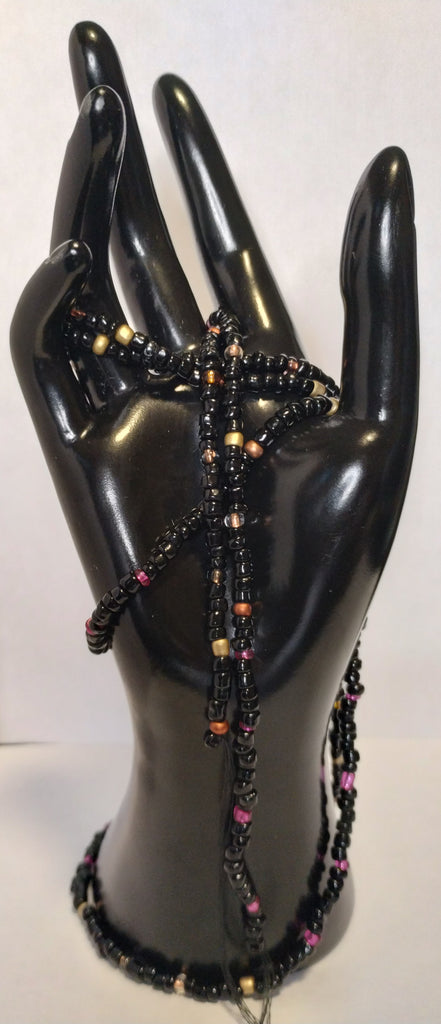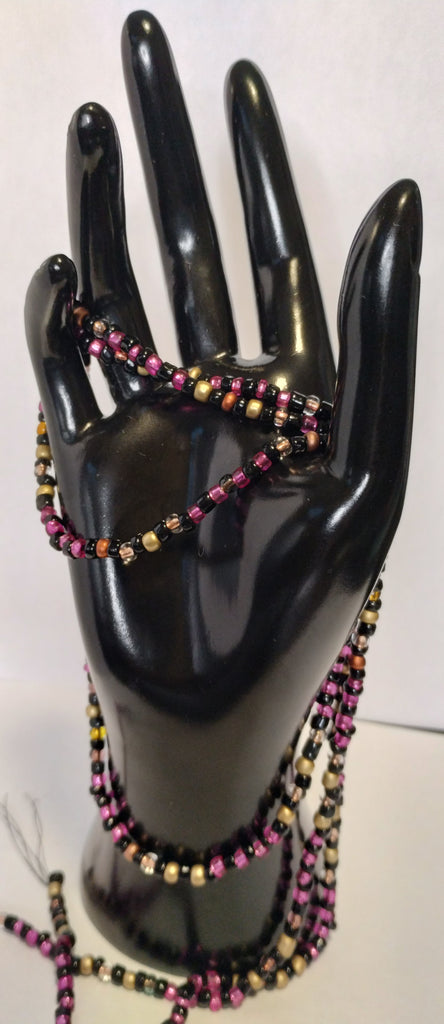 This is a 3 strand set made with regular string no stretch! The first strand is 40.5 inches. The second strand is 48 inches. The third strand is 48.5 inches. All 3 have a single knitted side to adjust before tying on! Can be sold separately!!