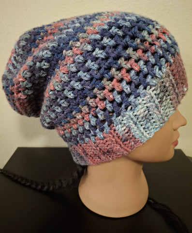 Cute, cuffed beanie can comfortably fit 29 inches around. Its 11 inches deep including 2 inch cuff.