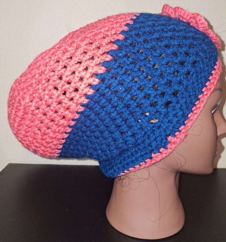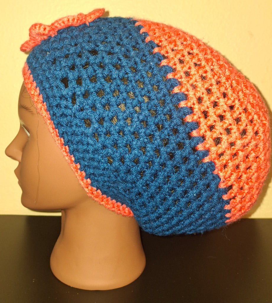 Soft mesh tam comfortably fits 23 inches around with 10 inches in depth. The bulb of the hat stretches to fit around 29 inches.