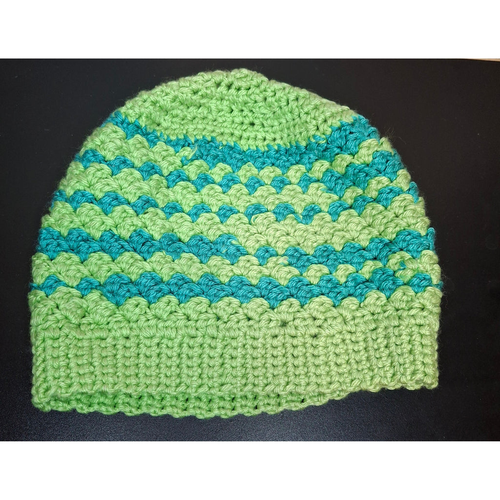 Cute winter beanie measures 9 inches across the cuff comfortably fitting 20 inches around and 8 inches deep!